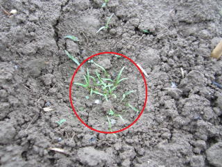 ゴボウ芽出し。2022.05.14 5:59 雨後、おらホの家庭菜園。2022.05.14 6:05