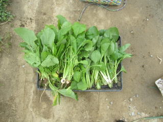 | ネギ、キャベツ、ゴボウ、ニンジン土寄せ。ニンニクお試し収穫。 | |