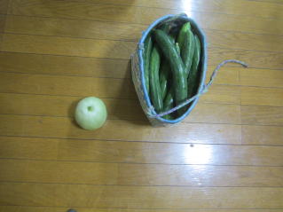 | 今日の収穫、キュウリとメロン。2023.07.26 18:46 | |