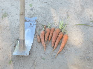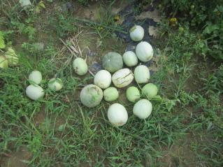 | 後芋、ナス、ニラ雑草取り。メロン、ニンジン収穫。 | |