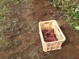 | サツマイモ収穫。ツル3本からの収穫。2023.10.01 11:00 | 秘伝豆、お試収穫。2023.09.30 14:34 |