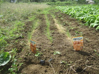 | 遅れていたニンニク植え付け、越冬茎たち菜の種蒔きを完了した。雑草取りし、耕耘をしての作業。 これからサツマイモ、里芋収穫、そして秋大根、青菜の間引き作業が待っている。。 |