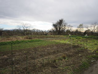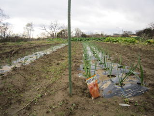 | 雪待つタマネギ。2023.12.03 12:05 | 雪待つニンニク。雑草が目立つ。来シーズン最初の作業が雑草取り?2023.12.03 12:05 |