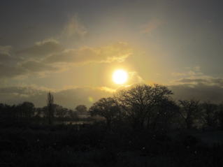 | おらホの家庭菜園、久々に白い世界。2024.01.08 7:45 | おらホの家庭菜園に日が昇る。2024.01.08 7:45 |
