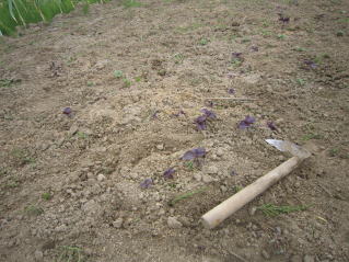 | 今年のシソ、良いもの収穫したいと雑草取りに励んでいる。 季節は初夏。雑草取りをマメにしていかないと直ぐジャングル化してしまう。雑草との格闘である。 |