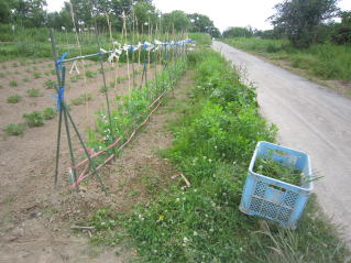 | 道路わきの雑草が気になるサヤエンドウ。2024.05.25 9:25 | 作業完了。2024.05.25 10:01 |