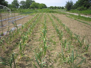 | スギナが蔓延ってきたニンニク。2024.05.25 10:00 | 雑草取り完了。2024.05.26 10:49 |