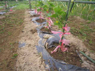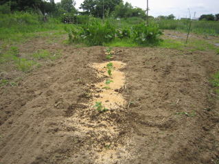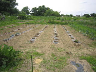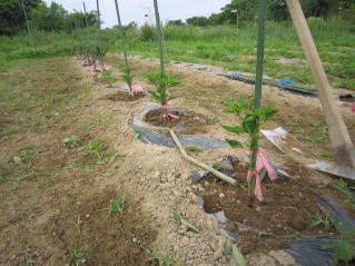 夏枝豆定植と秘伝豆(秋収穫豆)の種蒔きを完了した。