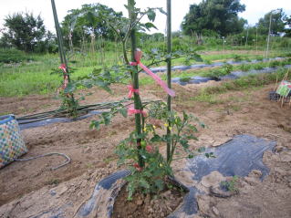 | サヤエンドウ終盤?トマト芽欠き。里芋、キュウリ順調。 | |