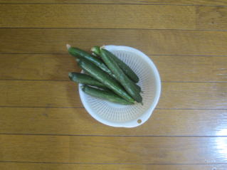 メロン結実確認し、ナス、シシトウ、キュウリ収穫をした。