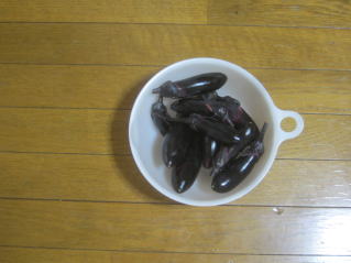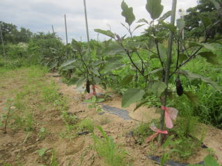 | ナス、実がなっている。2024.07.07 12:04 | ナス収穫。2024.07.07 12:51 |