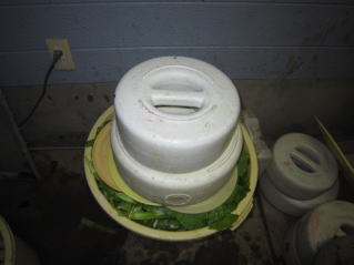 樽に青菜を置き、塩をふる。塩は目分量である。2024.12.04 19:08
