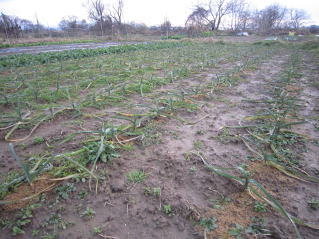 | 初雪が初積雪となったおらホの家庭菜園。大根が勿体ないと最後の収穫。 漬け込みしていたタクアン、青菜が食べられるようになってきた。 |