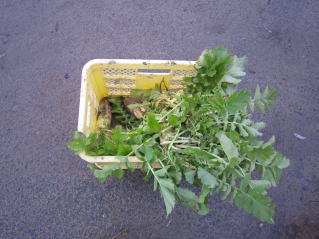 | 最後の大根収穫。青菜漬け込み、タクアン漬け込み成功。 | |