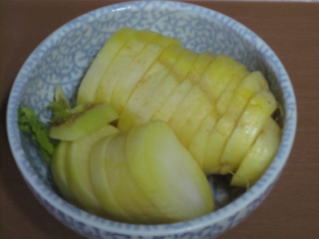 | タクアン漬け、水分が出てきた。2024.12.18 17:00 | 米糠の甘みで美味しくいただいた。塩辛くない。 2024.12.18 18:00 |