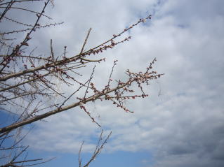 | おらホの杏芽、つぼみが膨らんできた。2025.04.12 14:41 | お裾分けをいただいている梅。7部咲き?2025.04.12 16:43 |