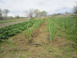 | タマネギ、ニンニク雑草取り。ニラ順調。 | |
