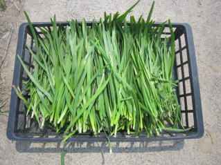 | 気がかりだったジャガイモの植え付け。ジャガ芋は昨年の食べ残しである。耕耘からの作業となった。 春まき大根の種を蒔いた。 ニラ最盛期を迎えている。 |