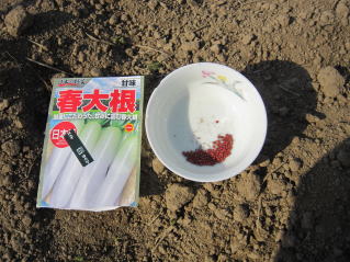 | ジャガイモ植え付け、春大根種蒔き。ニラ最盛期。 | |