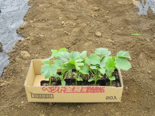 ここ数日深夜に降雨。6日も降雨の天気予報。しかも霜も下りない様子。苗ものうつけに絶好機である。里芋植え付け、キュウリ、プリンスメロン、ミニトマト、ズッキーニ植え付けた。