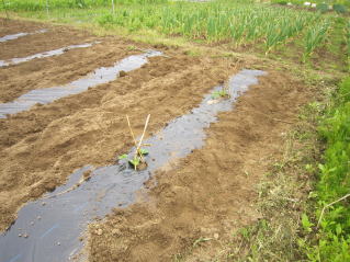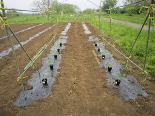 里芋植え付け、キュウリ、プリンスメロン、ミニトマト、ズッキーニ植え付け