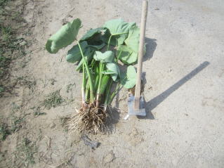 どのような成育なのか確認したい。2025.09.07 9:00 お試し収穫里芋。2週間ほど早めだった。2025.09.07 9:02
