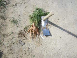 ネギ収穫。10月末にはもっと大きくなるはず。2025.09.07 8:55 ニンジン収穫。2025.09.07 9:02