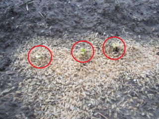 | 秋大根芽出し確認、玉ネギ、ニンニク植え付けのための雑草取り。 | |