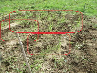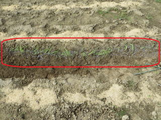 | 雑草取りしてタマネギ確認をしたら、例年になく発芽が悪い。異常な猛暑のせいか?不足分は苗購入しての定植となりそうだ。 |