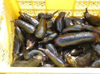 | ニンニク発芽。2025.10.04 13:20 | ナス収穫。13:53 |