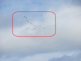 | そろそろ、タマネギ定植しないと。マルチ張りを急いだ。定植は10月18日(土)としよう。 クオー、クオーとの鳴き声。空を見上げると白鳥の編隊。10羽はいるだろう。冬到来? |