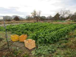| ようやくイボ竹を束ねることができた。2025.11.24 11:30 | 越冬前、おらホの家庭菜園。2025.11.24 11:52 |