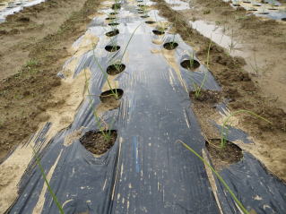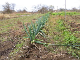 | 収穫前のネギ。積雪まで食べる際収穫するとする。2025.11.24 10:24 | 越冬前、タマネギ。2025.11.24 10:25 |