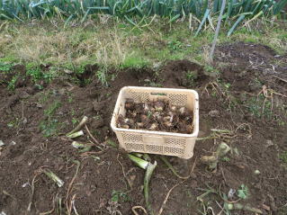 | 収穫前。2025.11.24 8:05 | 約30本収穫。泥を簡単に落とした。2025.11.24 8:27 |