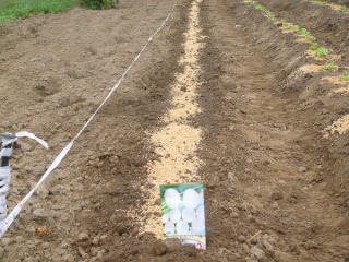 基本的には夏かぶと同じ蒔き方をする。異なるのはゴマ虫(おらホの呼称)対策のため顆粒状殺虫剤を蒔くことだ。