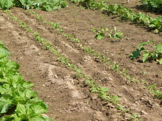 種が小さいので厚く蒔きがちとなります。こうした場合、間引きが絶対必要です。間引きにより個体を大きくします。