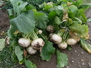 秋かぶはおらホでは冬場の貴重な保存野菜となる。地中に埋め、食するときは雪を掘り返して洗い、調理する。