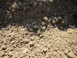 B一粒ずつつまみ、蒔いていきます。