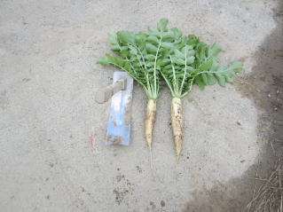 大根は秋11月に収穫します。このころになると太さ7〜8センチ、長さ50センチ程度に成長しています。