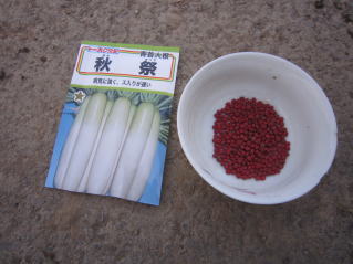 蒔き時はおらホでは昔から9月1日と決まっています。9月1日に地元町内で「風(かざ)まつり」といって八幡様の太鼓を打ち鳴らす伝統行事が行われますが、この日を基準にして秋野菜の種蒔きが行われてきました。ちなみに9月1日は山形青菜、この1週間前には白菜が種蒔きされます。