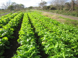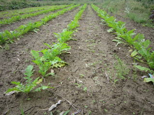 右4畝秋大根。左3畝が山形青菜。順調である。2024.10.06 10:02 |