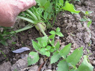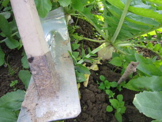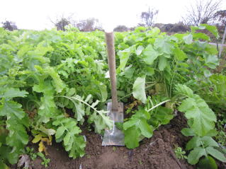 青首大根は煮物に利用し食べきれないので屋敷畑内に埋め保存します。食べる時雪の名から掘り起こします。 |