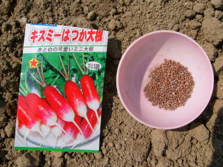 辛みがあるのか余り害虫はつかないようですし、野鳩も発芽したばかりの芽をつつかないようで楽です。