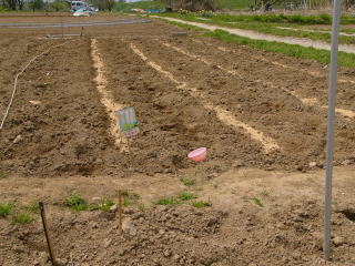 三角鍬で溝を掘ります。2007.05.08作業撮影