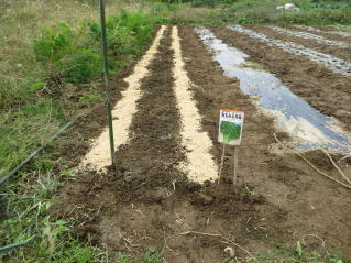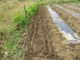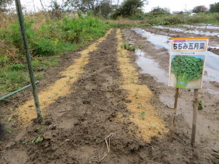 三角鍬で溝切りしてのスジマキ。2025.10.19 10:08 |
