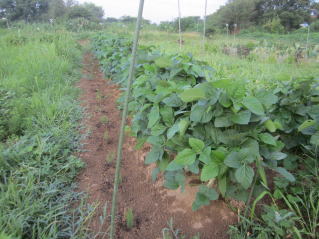 お盆に仏壇に供える夏豆の栽培補方である。若芽が野鳩に突かれるので、ネットで内で発芽させある程度大きくなってから定植している。