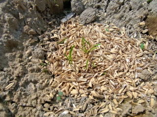 @気が向いたら、3センチメートル位の若芽になったとき顆粒状合成肥料をパラパラッとに蒔いています。