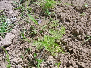 種が小さいので厚く蒔きがちとなります。こうした場合、間引きが絶対必要です。間引きにより個体を大きくします。