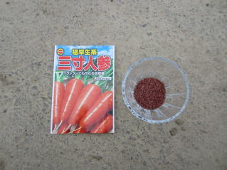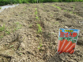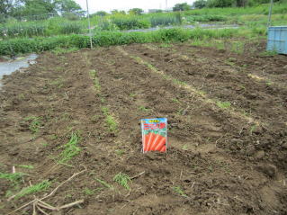 | 今年も、太目、短めのニンジンにしました。1袋400円くらい。昨年は洪水で全滅。2021.05.05 7:53 |