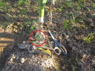 | 目出し確認。太めのニンニクの芽である。2025.09.30 15:51 |